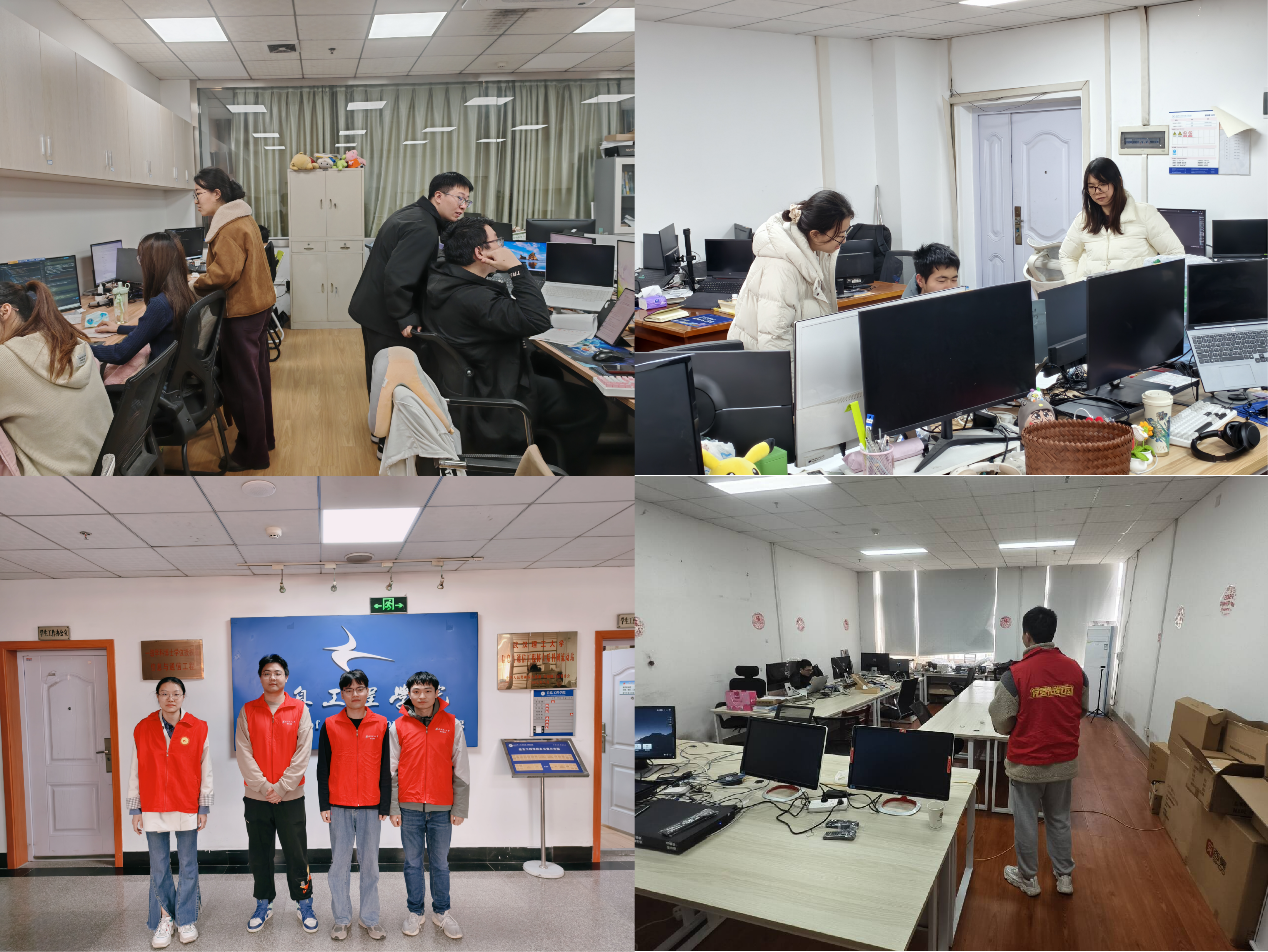 在实验室与工作室区域,研究生党员先锋队同样进行了全面细致的安全排查。重点检查了实验室的用电规范、仪器设备状态以及整体环境卫生,针对排查中发现的个别工位杂物堆积、人离未断电等现象,先锋队队员们现场协助同学进行整理,并指导落实整改。