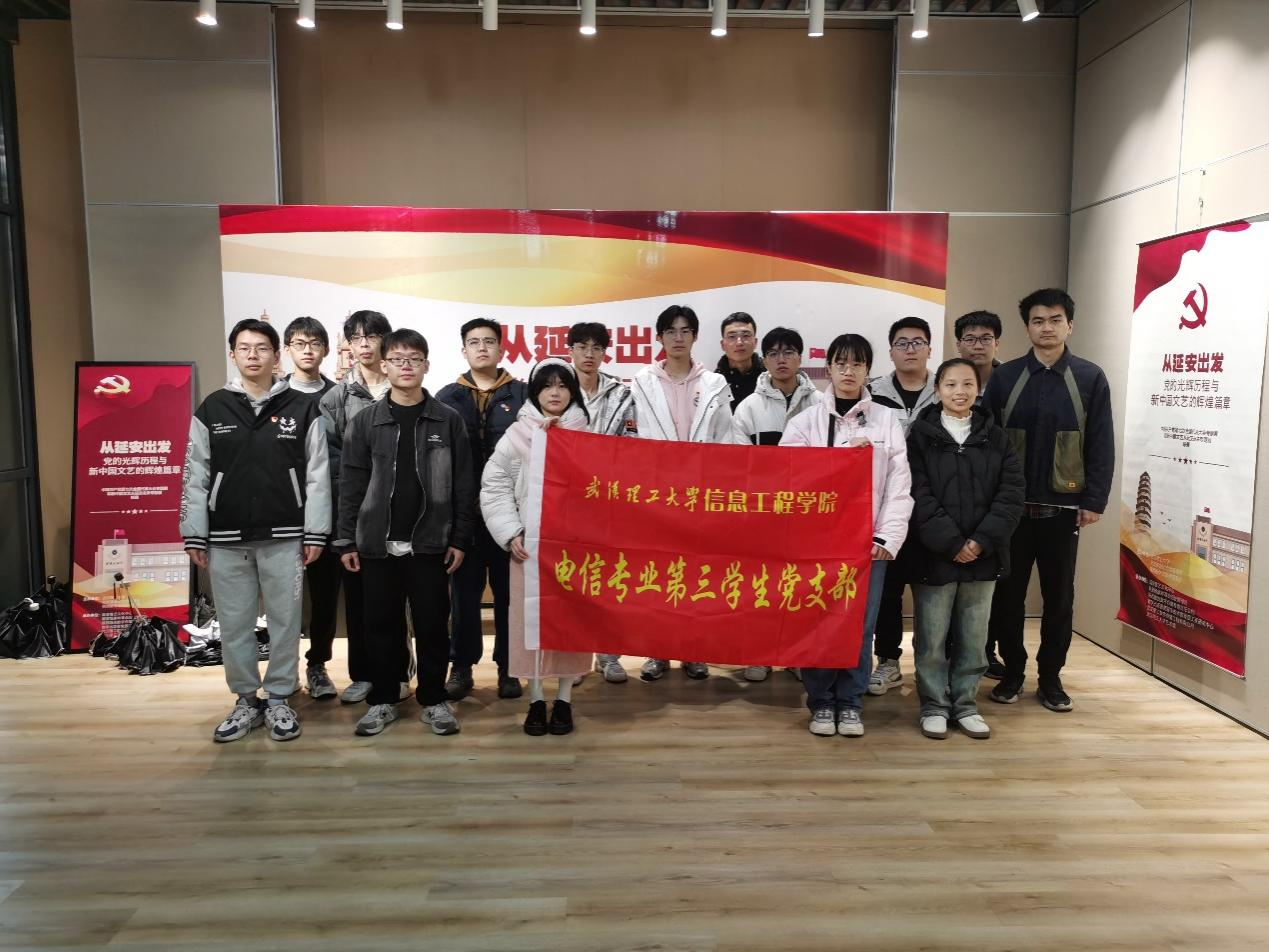 电信专业第三学生党支部与继续教育古装a片教工第一支部于12月10日在学校艺术馆(南湖图书馆1楼流动展厅)开展了支部共建活动暨主题党日活动。本次活动内容为参观学习“从延安出发——党的光辉历程与新中国文艺的辉煌篇章专题集”,旨在深入学习贯彻党的二十大精神,传承红色基因,进一步根植党员同志的爱国情怀。
