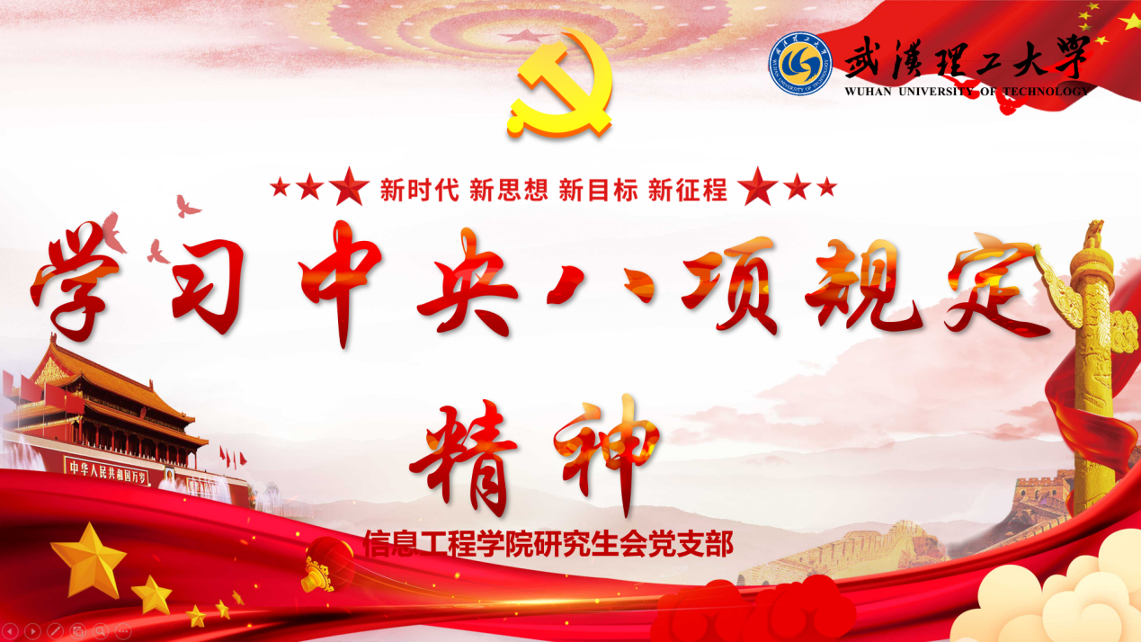 为深入学习贯彻习近平新时代中国特色社会主义思想,加强党支部的作风建设,6月19日,研究生会党支部在线上开展了“学习贯彻习近平总书记关于加强党的作风建设的重要论述和中央八项规定及其实施细则精神”主题党日活动。此次活动由党支部副书记张祎喆主持,全体党员参与。