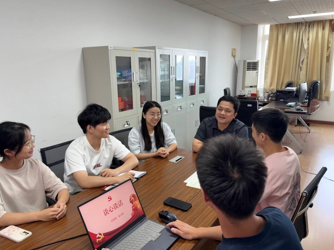 会后,方艺霖老师与党支部党员开展了谈心谈话,围绕当前党员的思想动态、学业科研压力、支部工作实效等方面进行交流。他鼓励大家在思想上主动“补钙”,在工作中勇于担当,积极发挥党员先锋模范作用,推动支部工作提质增效。
