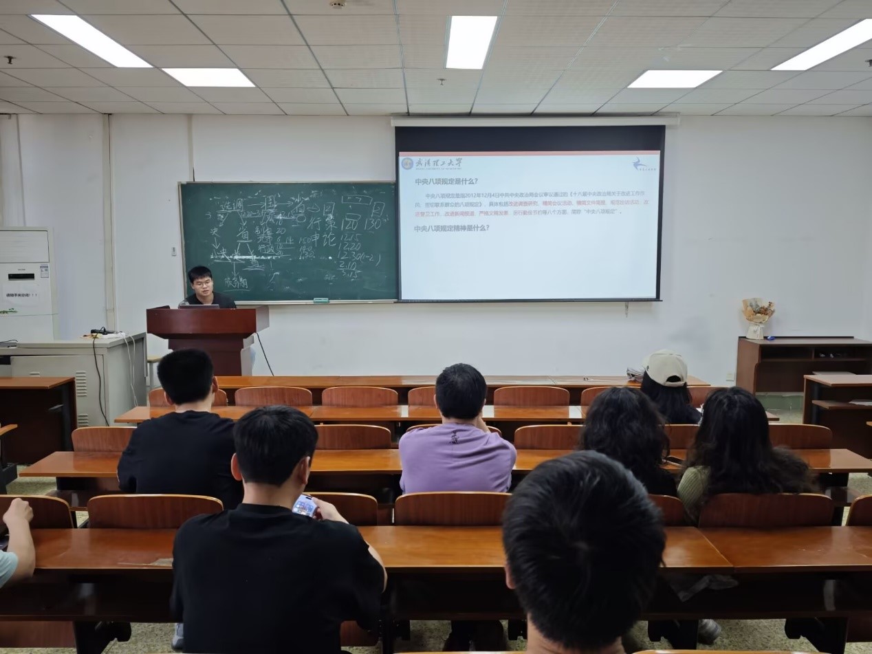 为巩固“学习贯彻习近平总书记关于加强党的作风建设的重要论述和中央八项规定及其实施细则精神”专题学习成果,引导研究生党员增强政治意识、纪律观念与党性修养,2025年6月25日下午,古装a片 研究生第四党支部在爱特楼401教室组织开展了“学习贯彻习近平总书记关于加强党的作风建设的重要论述和中央八项规定及其实施细则精神”专题授课。活动邀请韩一老师参加,党支部书记丁伟主持。