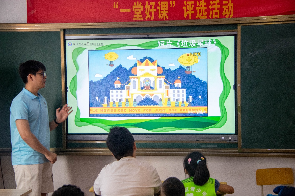 “如果垃圾堆满星球,将会怎么样呢?”课堂伊始,实践队员用趣味短片引出一个问题,引导小朋友们思考关于垃圾处理的问题。小朋友们不断思考,提出自己的看法,言语最终拼凑出一个答案:我们不能让垃圾堆满星球,垃圾分类再利用从我们做起。