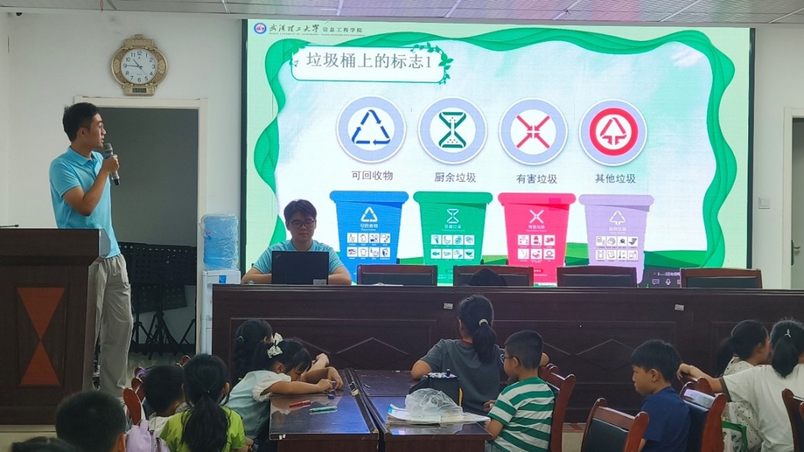 为宣传普及垃圾分类知识,在巩固推进洪山区垃圾分类宣传工作进程中展现我校社会实践队风采,7月10日上午,“信息筑火炬,点燃童心梦”社会实践队前往洪山区张家湾街道金域天下社区暑期托管班讲解垃圾分类知识宣讲课程。