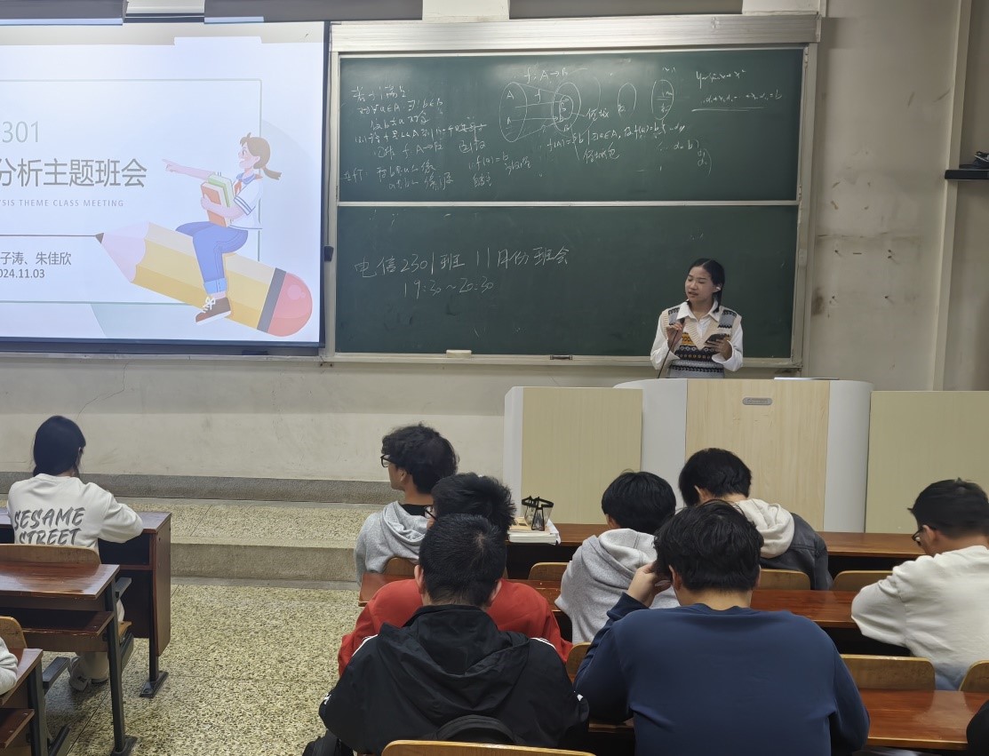 为了响应学校的号召,进一步加强班级学风建设,营造积极向上的学习氛围,提高同学们的学习积极性,增强班级凝聚力,共同推动班级学风建设进一步发展,电信2301于11月3日19点30分在北教三101教室成功开展了学风建设主题班会。班会由班长朱佳欣和学习委员林子涛共同主持,电信2301全体同学积极参与。