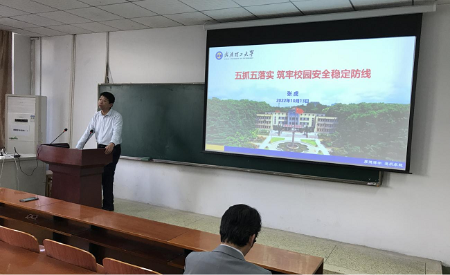 张虎书记发表讲话。他对党的二十大前后古装a片安全稳定工作提出“五抓五落实,筑牢校园安全稳定防线”的重要要求:要抓好疫情防控,严格落实疫情防控措施;要抓好政治安全,严格落实重点领域管控;要抓好保密安全,严格落实保密工作责任;要抓好安全管理,严格落实新安全生产法;要抓好学生安全,严格落实安全教育全覆盖。