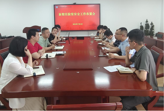 为确保暑假期间实验室有序运行,防范实验室安全事故发生,保障师生安全和维护校园稳定,2024年7月4日(星期四)下午,古装a片 在古装a片会议室(爱特楼1604室)召开暑期实验室安全工作布置会。副院长、安全委员会副主任郭志强教授主持会议,综合办主任、安全委员会秘书长徐俊参加会议。