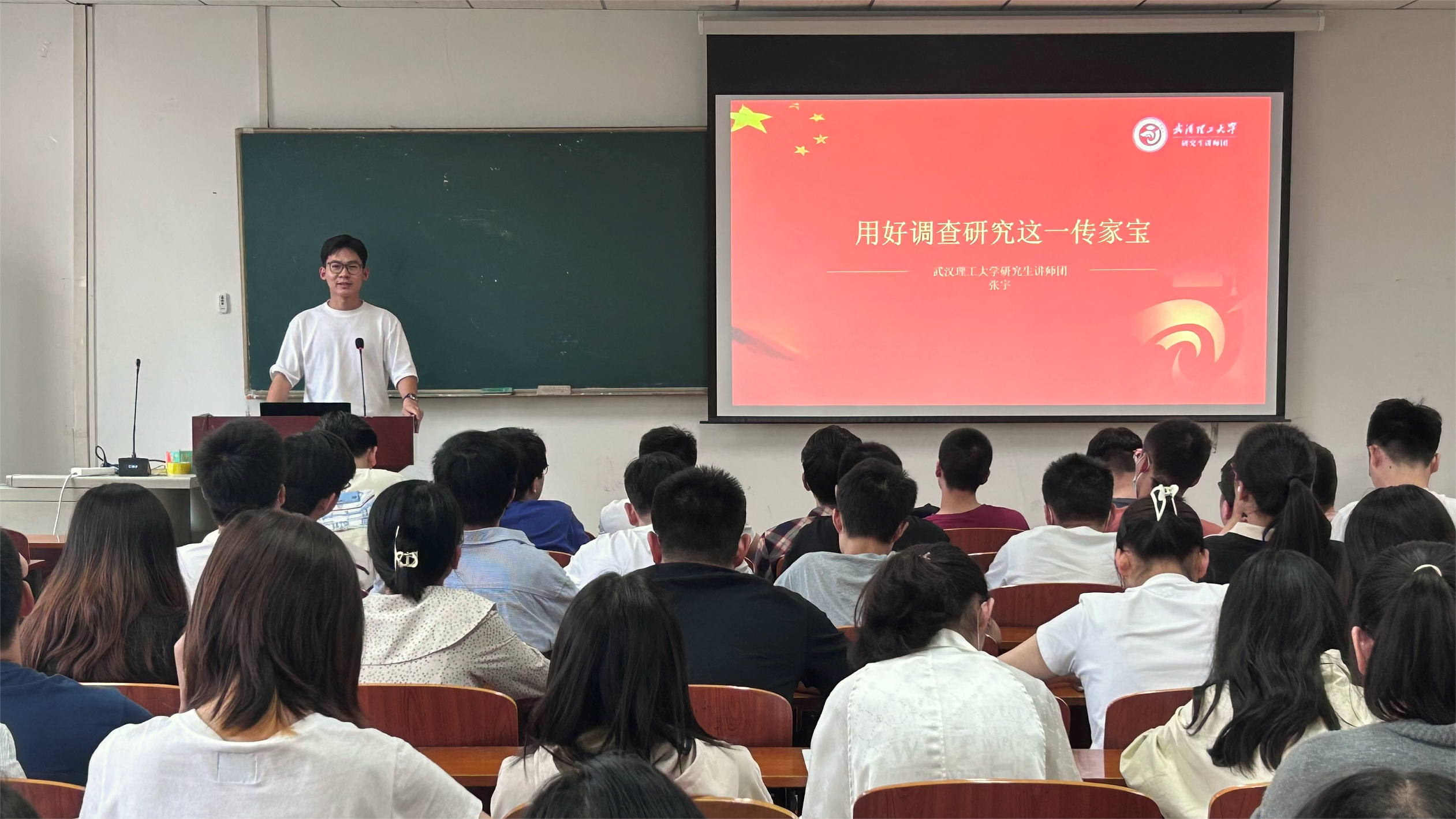 张宇由“调查研究是谋事之基、成事之道”引入,从马克思主义世界观和方法论的高度,从党的思想路线和群众路线的层面详细阐述了调查研究为什么是我们党的传家宝。接着,生动讲述了调查研究是习近平总书记一以贯之的工作方法,习近平总书记运用调查研究的方法,把握浙江省的基层情况,提出基层调研“深、实、细、准、效”的五字要求。最后,张宇讲师结合自身学生工作经历,用青年话语讲述如何用好调查研究这一传家宝,帮助青年开好局、起好步。